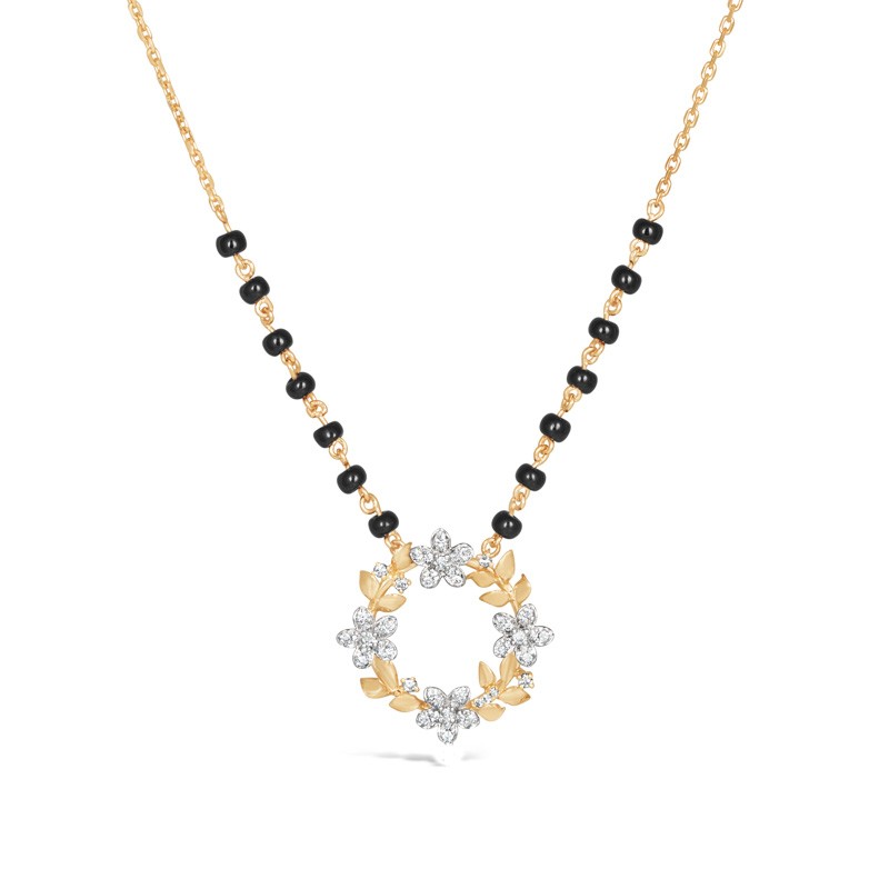 Pushpa Gold mangalsutra is designed for gold lovers with a touch of sparkling diamonds. With a mesmerizing flower motif, Pushpa Gold Mangalsutra signifies the blissful journey with your other half. This latest mangalsutra is available online and has fine works of crafts added to it, making it hard to resist.