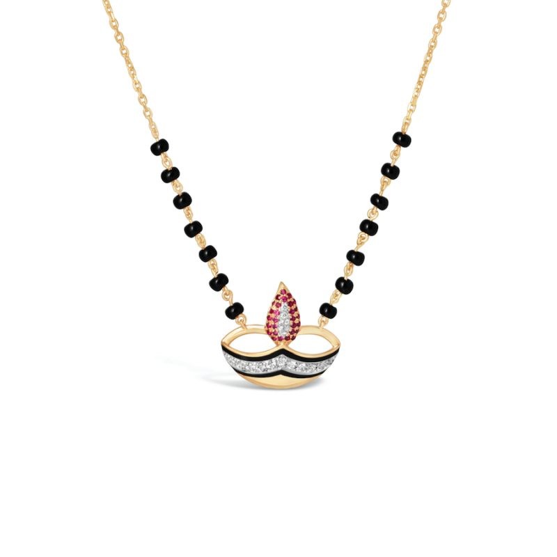This mangalsutra work has 14K solid gold and diamond and Ruby to add that extra shine. You might wanna grab these as they go well with both traditional attire and modern everyday look. This contemporary mangalsutra will also set your style game to fire.
