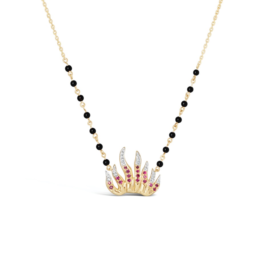 This modern mangalsutra is as lit as fire through its symbolic sense. With Fire as Witness, I promise to uphold all my vows, love and forever keep you safe. The Sakshi Mangalsutra, inspired by Agni Sakshi, adds a pinch of Hotness and cool into your style while reminding you of all the love, care and blessing that you promised to one another.
