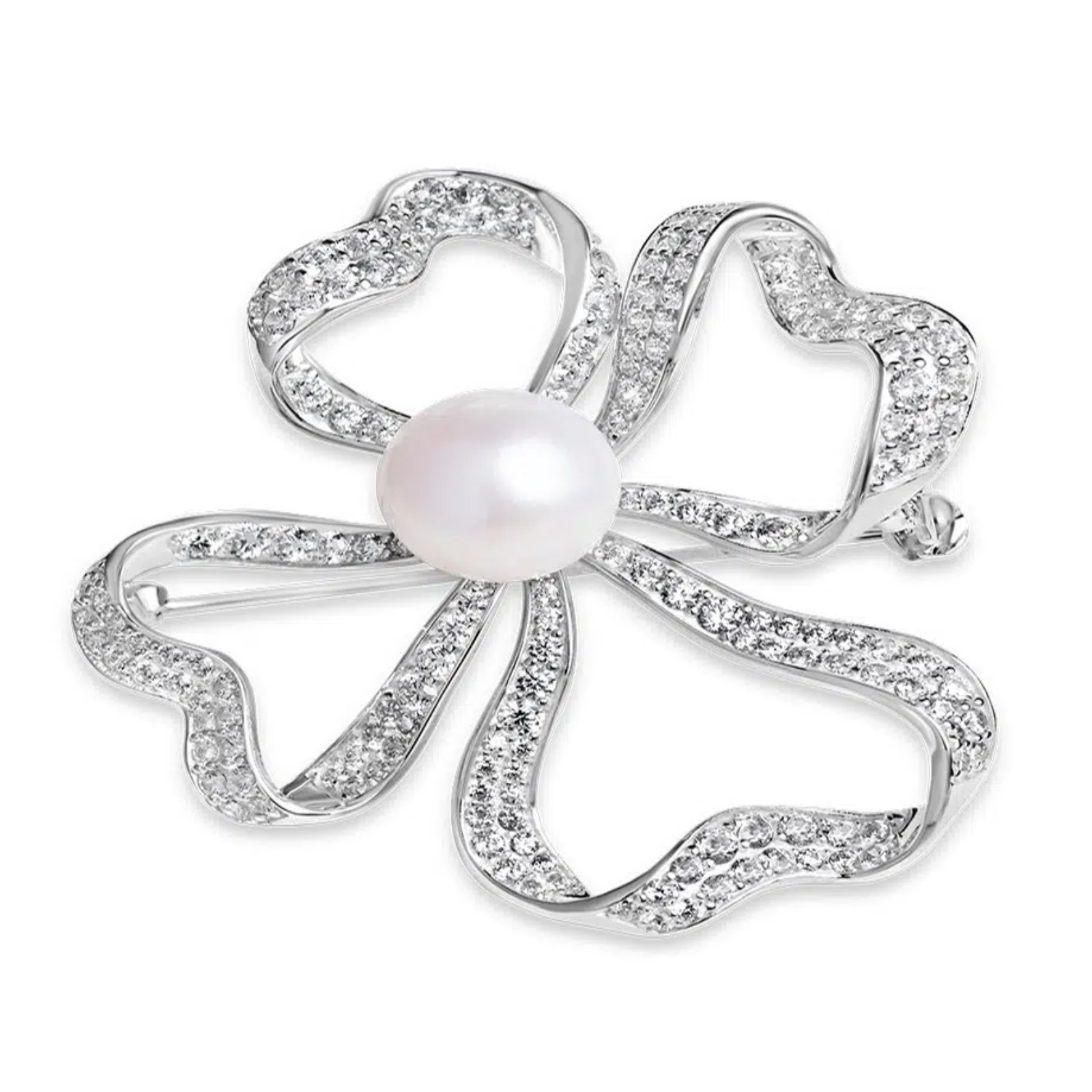 Exquisite 4 Leaf Flower with Pearl Brooche