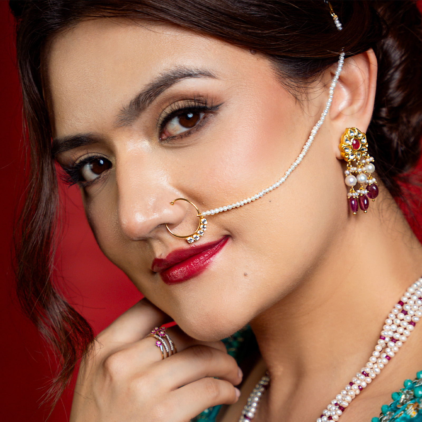 Aalia Nose Ring With Pearls Extender For Non-Pierced Nose