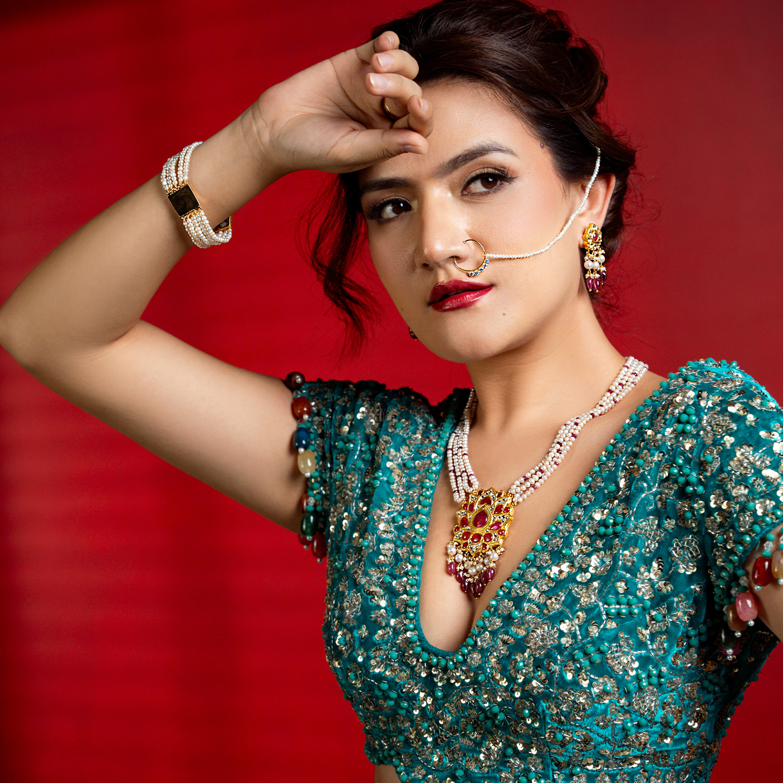 Embrace the timeless allure of the Aalia Nose Rings. Crafted in 22K gold and adorned with lustrous pearls, these nose rings are available for both pierced and non-pierced noses. Inspired by the graceful style of Mughal jewellery, they are a symbol of feminine beauty and elegance.