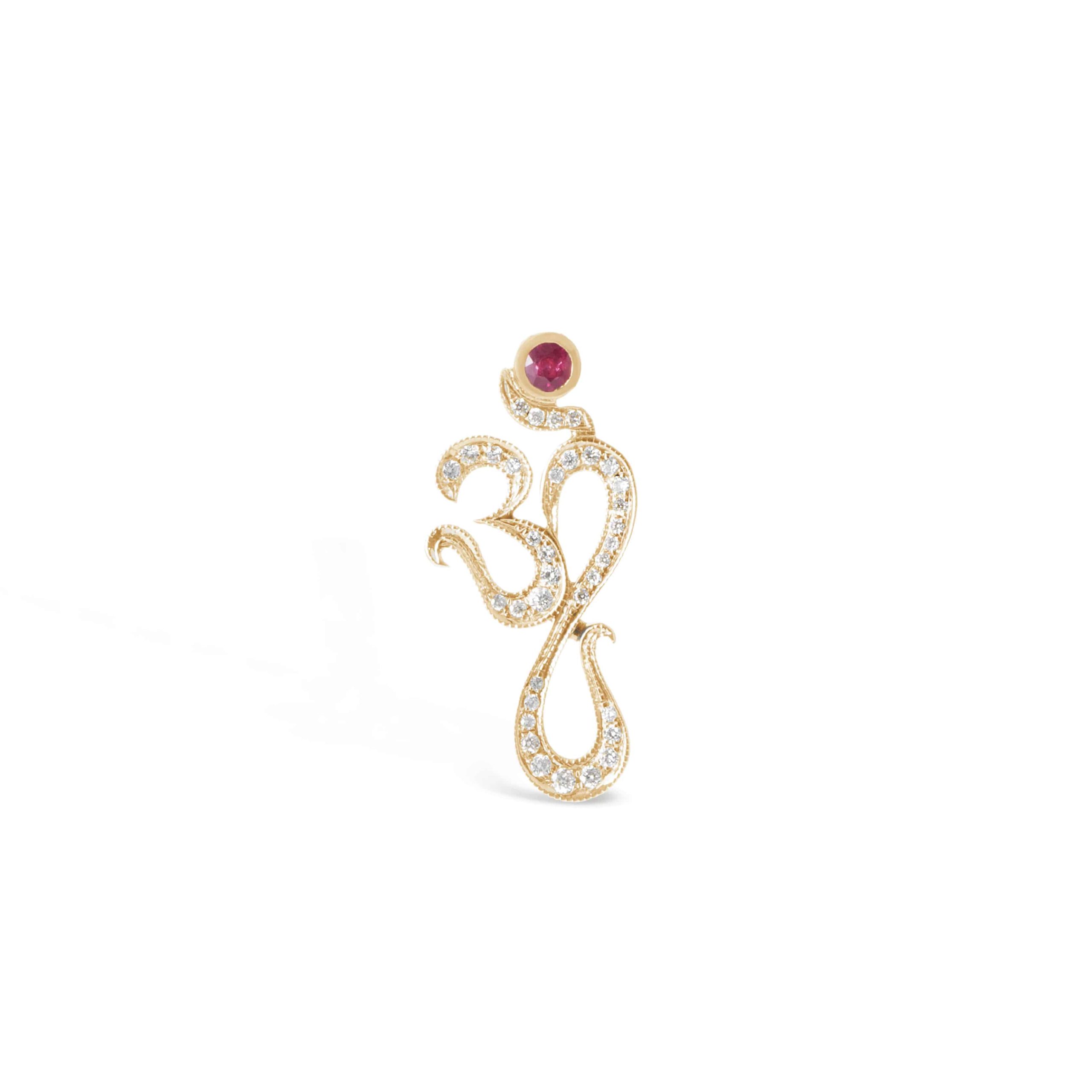 The meaningful curves of the Aum symbol take a more playful version and are set in diamonds and ruby which gives a richer and more elegant look.