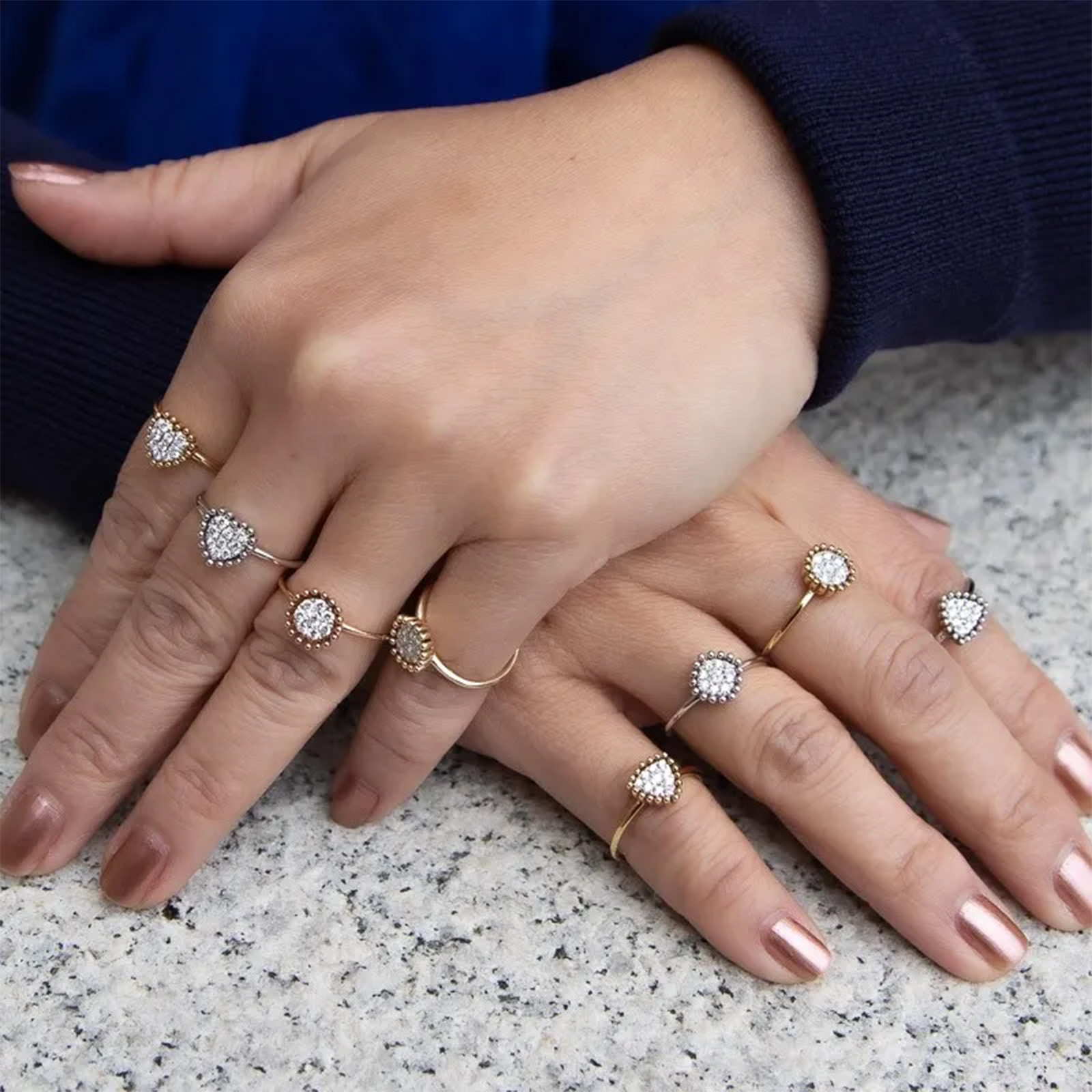 Diamonds take geometric shapes with the pretty gold details in this collection.