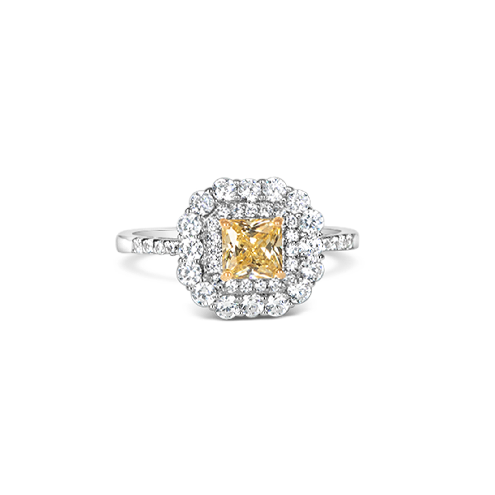 Elegant Yellow centre with Double halo Silver Ring