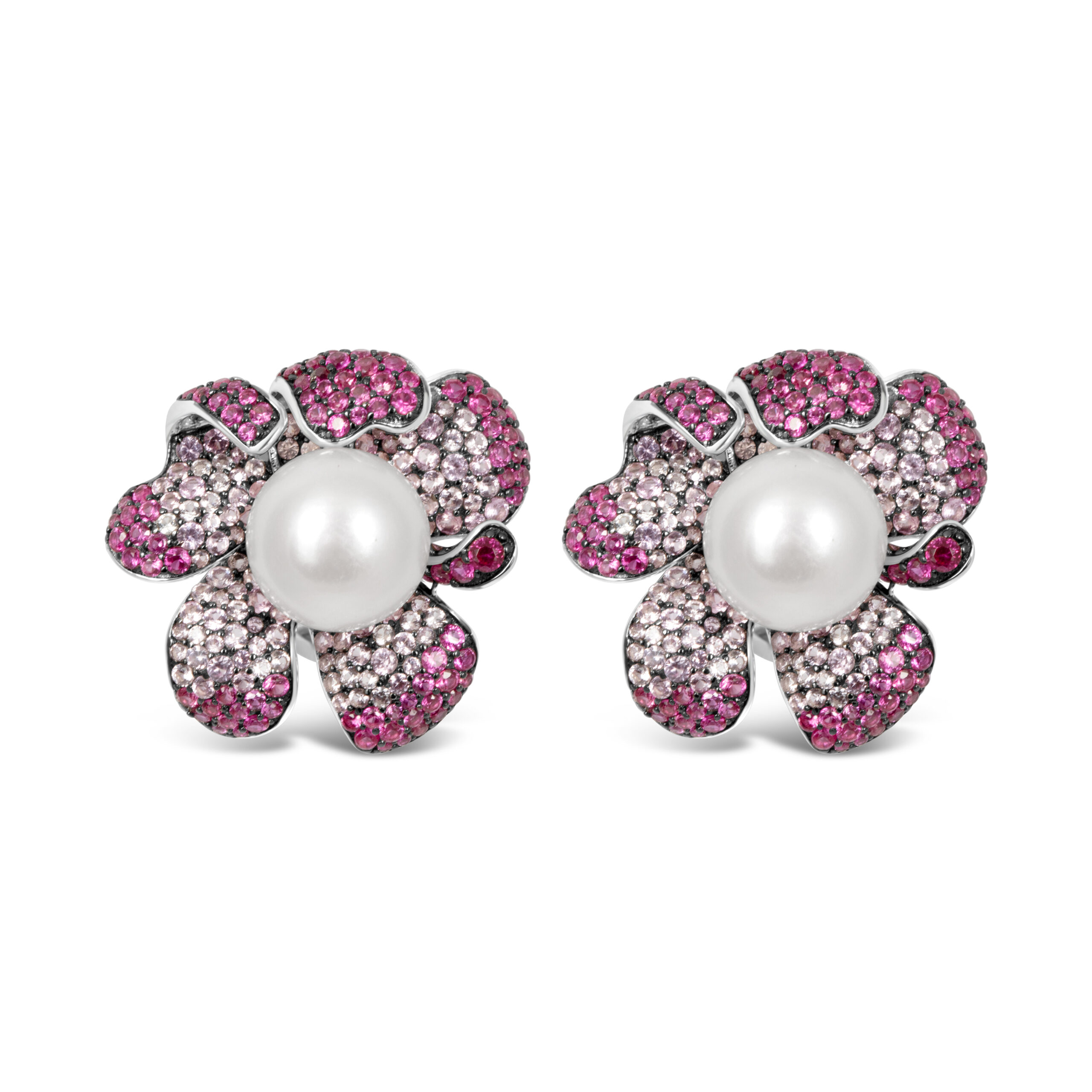 Exquisite Silver Pave Ruby & Sapphire Pearl Earrings – KN