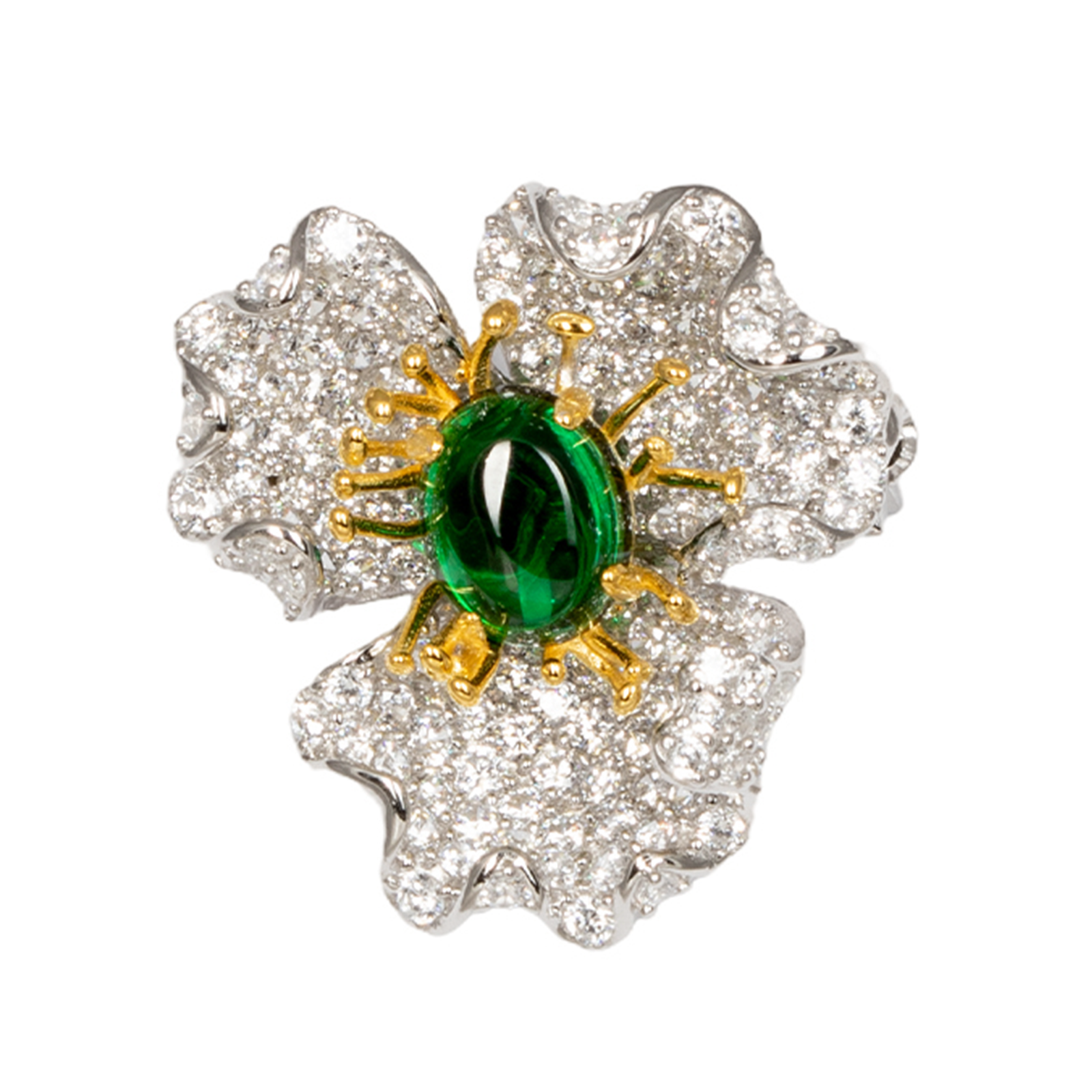 Exquisite Silver Pave White & Green Flower Brooch – KN