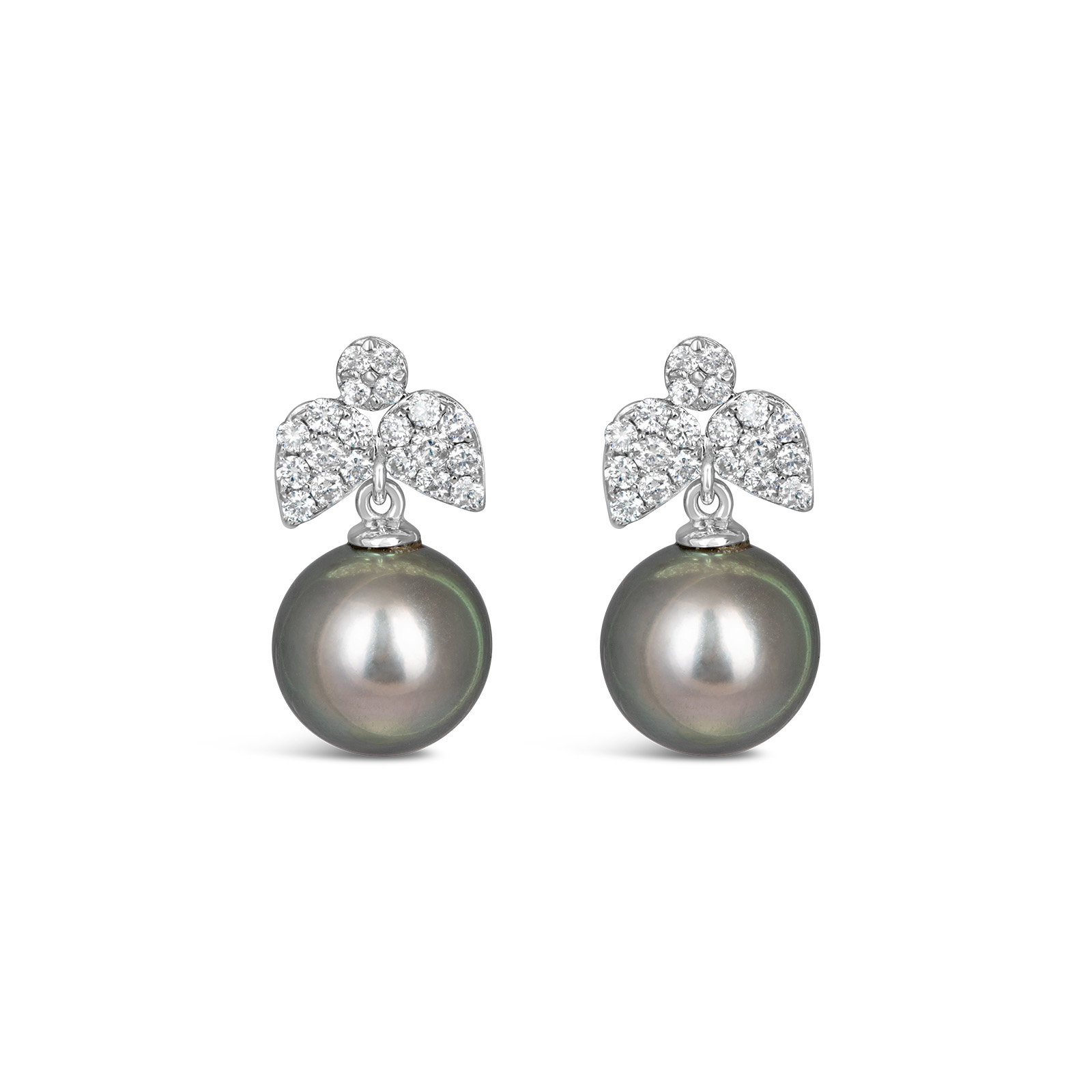 Kate Diamond Flower Pearl Earring / Tahitian / WG