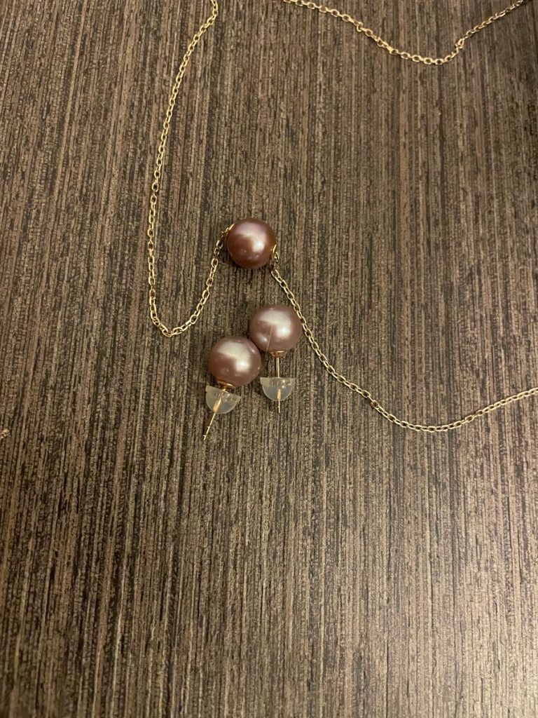 Beautiful set of earrings. I got this to match the lavender floating pearl necklace- the colour isn’t 100% a match but it’s pretty close and I think it looks so eye catching. I’ve had a few ladies ask where they’re from. I love KN Pearls and I’m really the ‘less traditional’ colours offered.