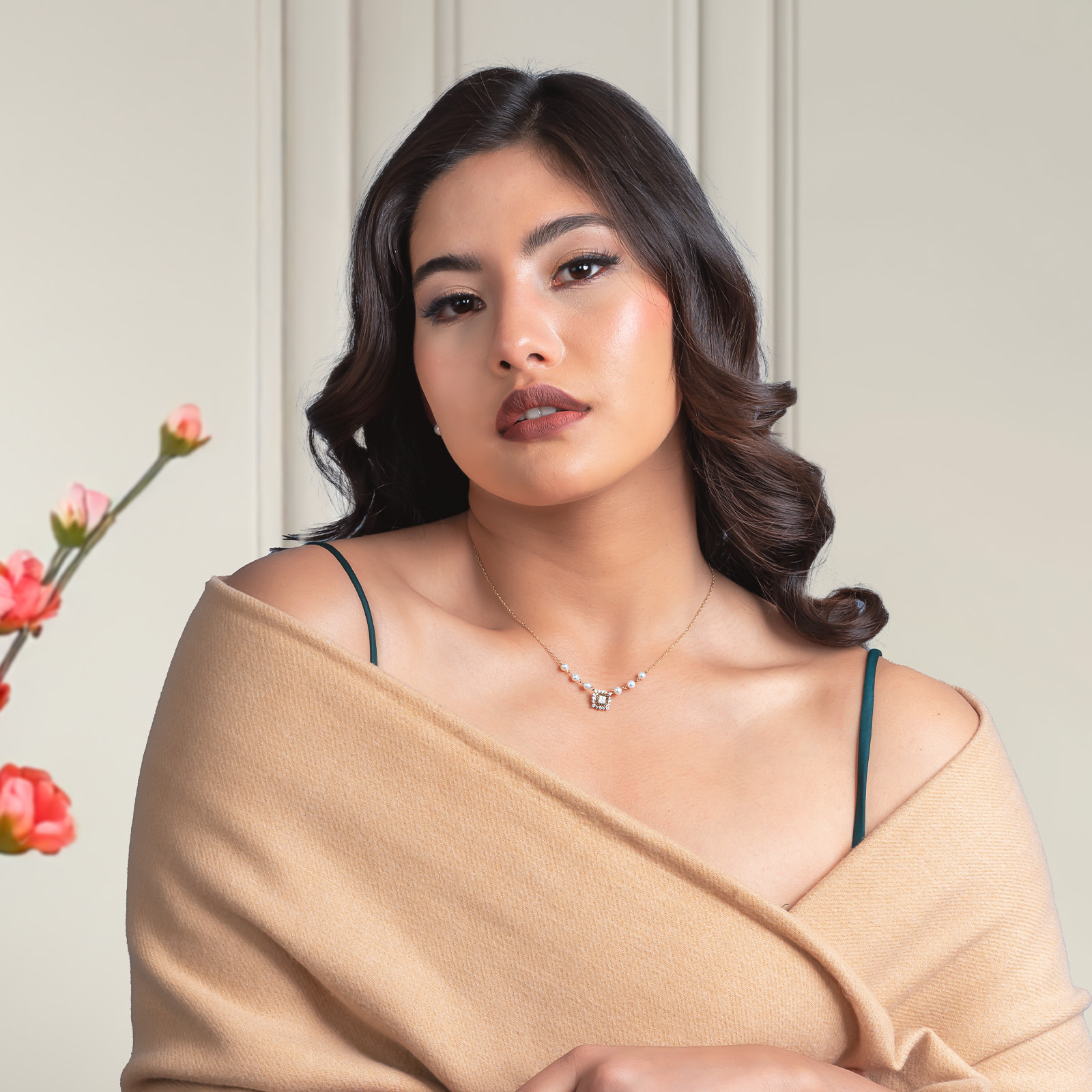 Luminous Diamond and Pearl Square Necklace
