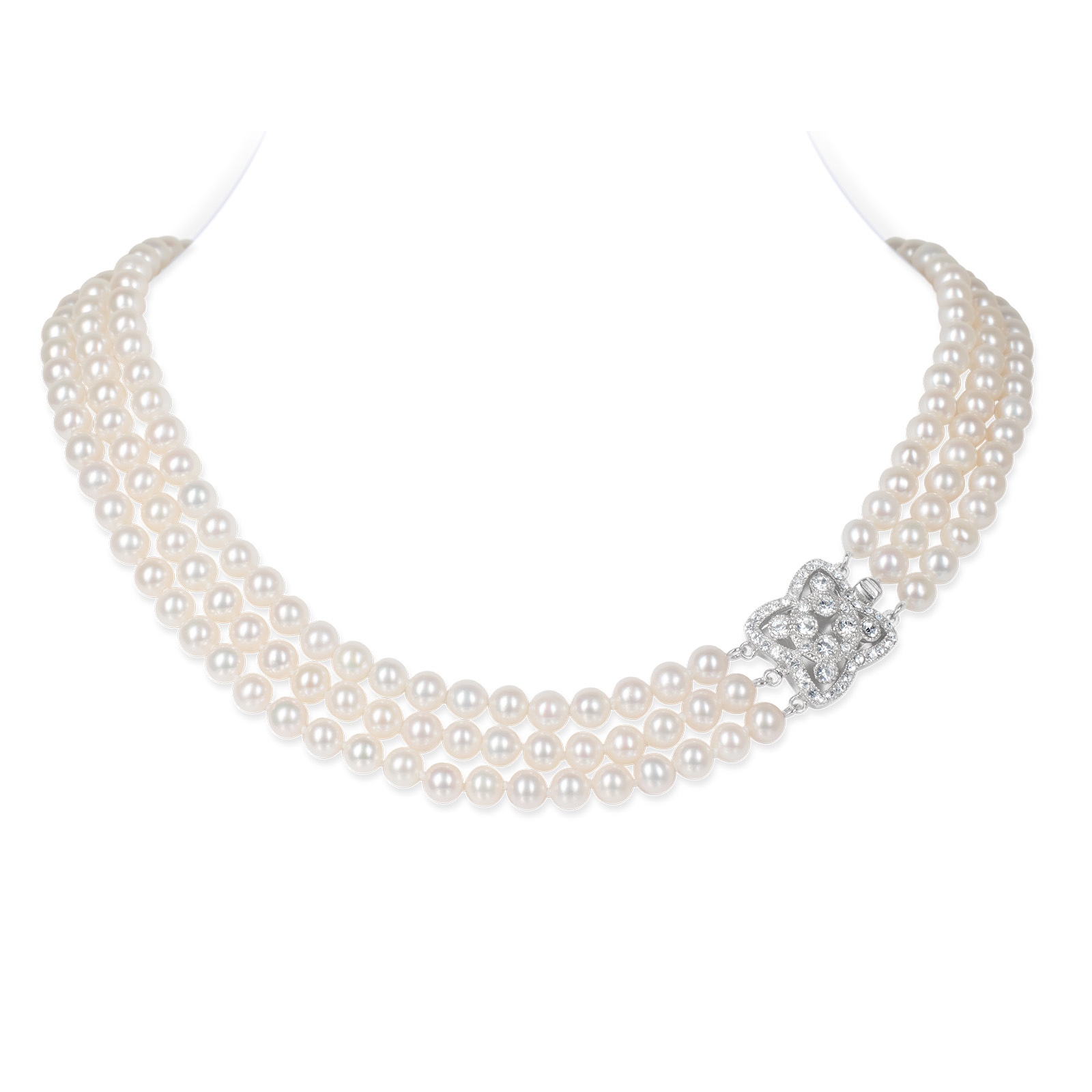 Lydia 3 Strands White Pearl Necklace