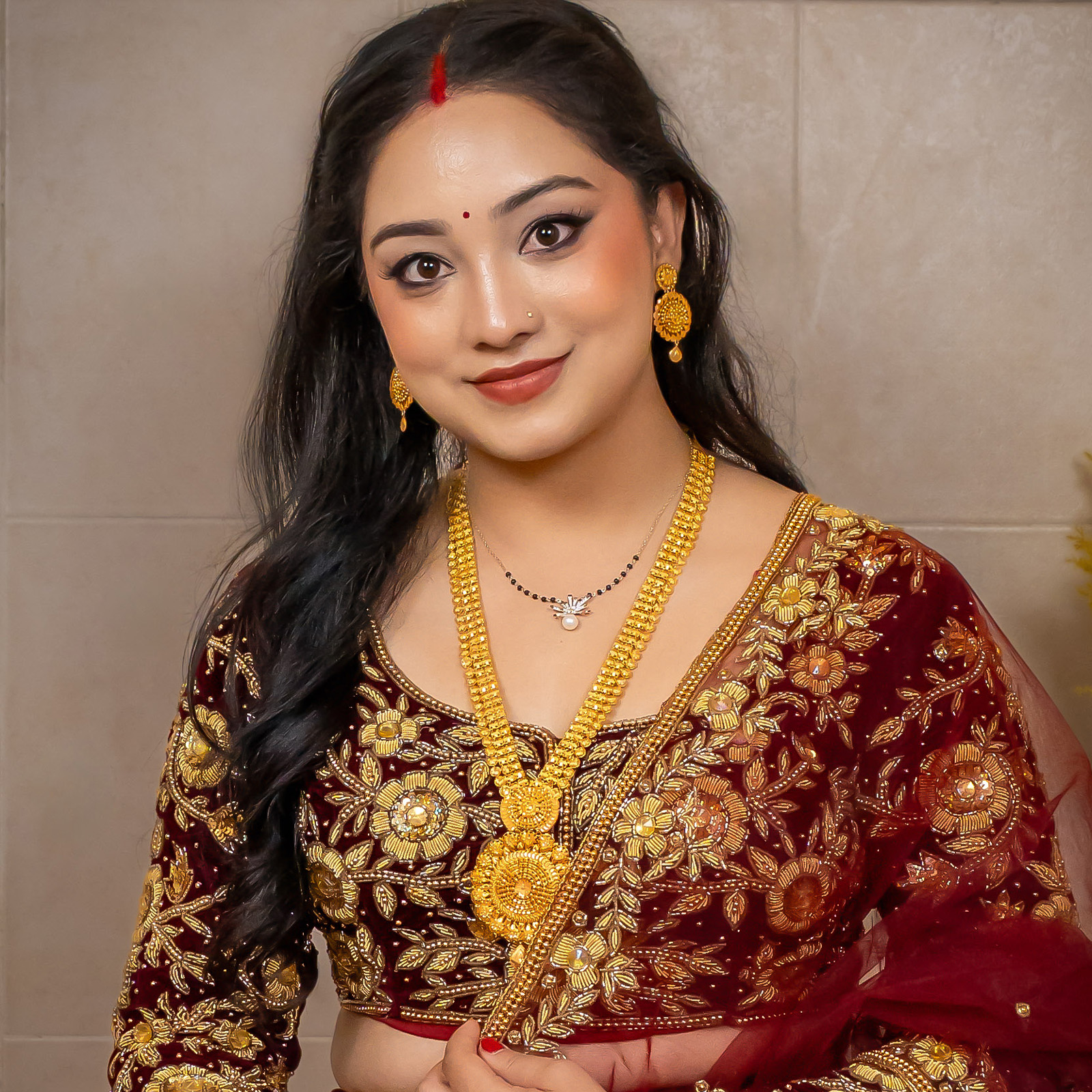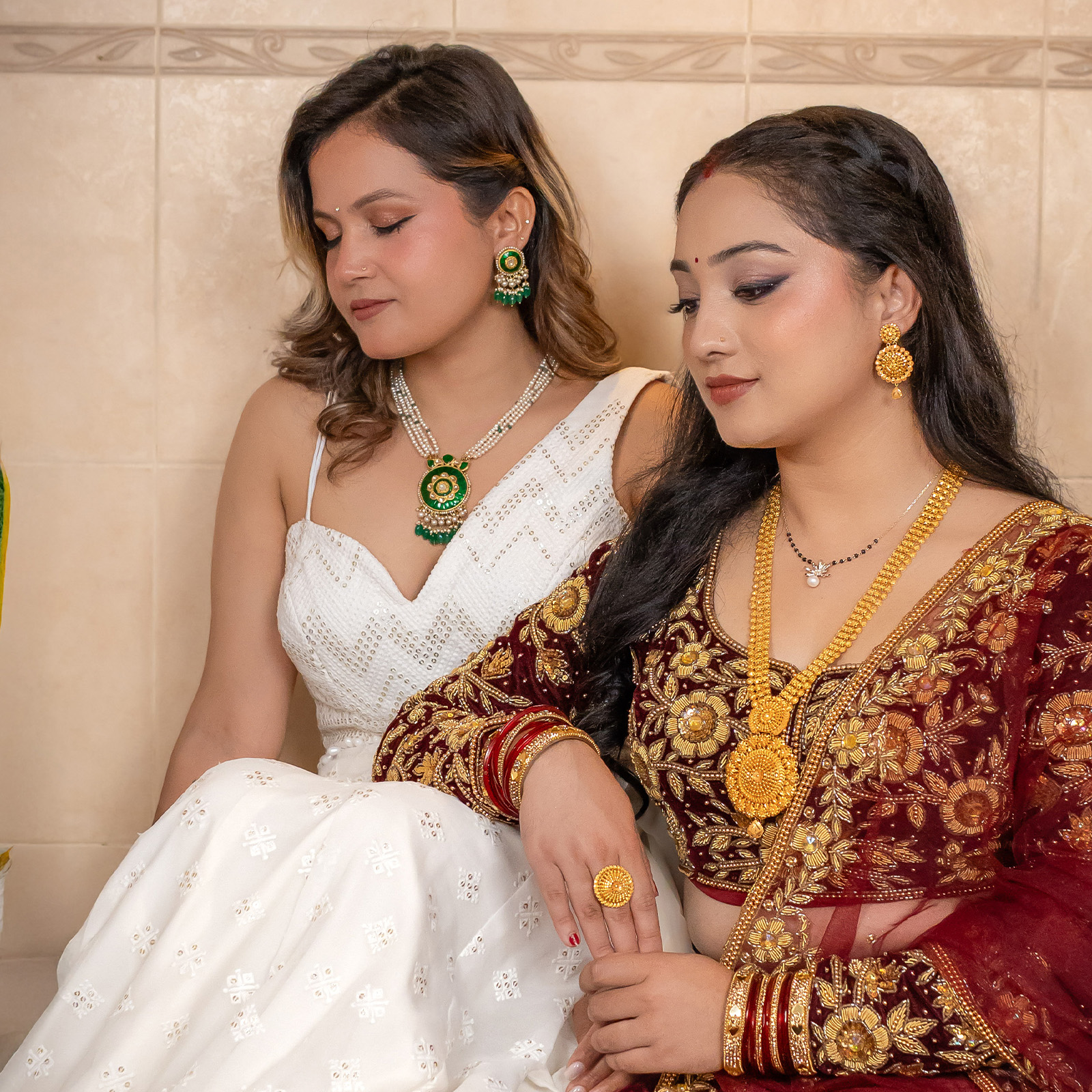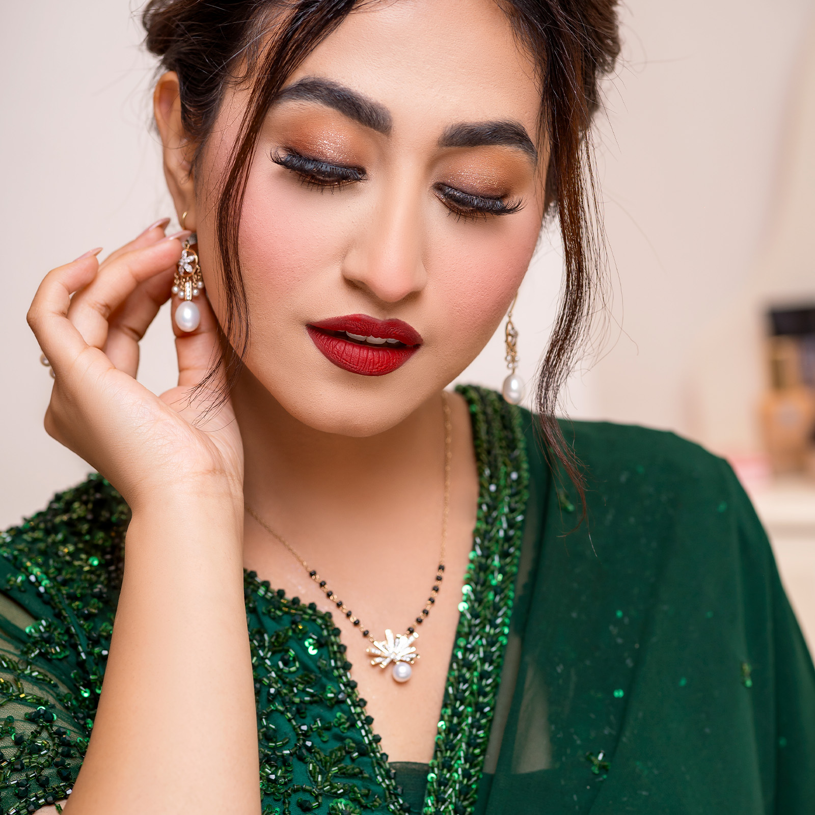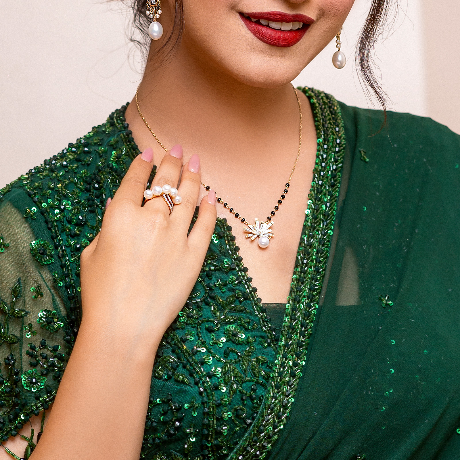Our Makhmali Phool Mangalsutra, inspired by the vibrant Gomphrena globosa or “Makhmali Phool” in Nepal, captures love’s enduring flame and the burst of blessings it brings. Crafted in 14k yellow gold, this exquisite piece features a pendant mirroring the flower’s fireworks display, with radiant white diamonds mirroring the blooms’ hues and a shimmering pearl symbolizing joy and celebration in a relationship. Makhmali Phool garlands symbolize longevity, prosperity, and unbreakable sibling bonds during Tihar/Diwali, showcasing the flower’s enduring nature and vibrant color even after drying, reflecting the everlasting love in marriage. This mangalsutra embodies the energy and excitement of the Gomphrena globosa ‘Fireworks’ cultivar, representing passion, love celebration, and blessings in a lifelong journey together. Beyond adornment, it testifies to love’s enduring nature, growing stronger with time. Wear it to symbolize commitment, vibrant love, and a continuous burst of blessings and joy in your shared journey.