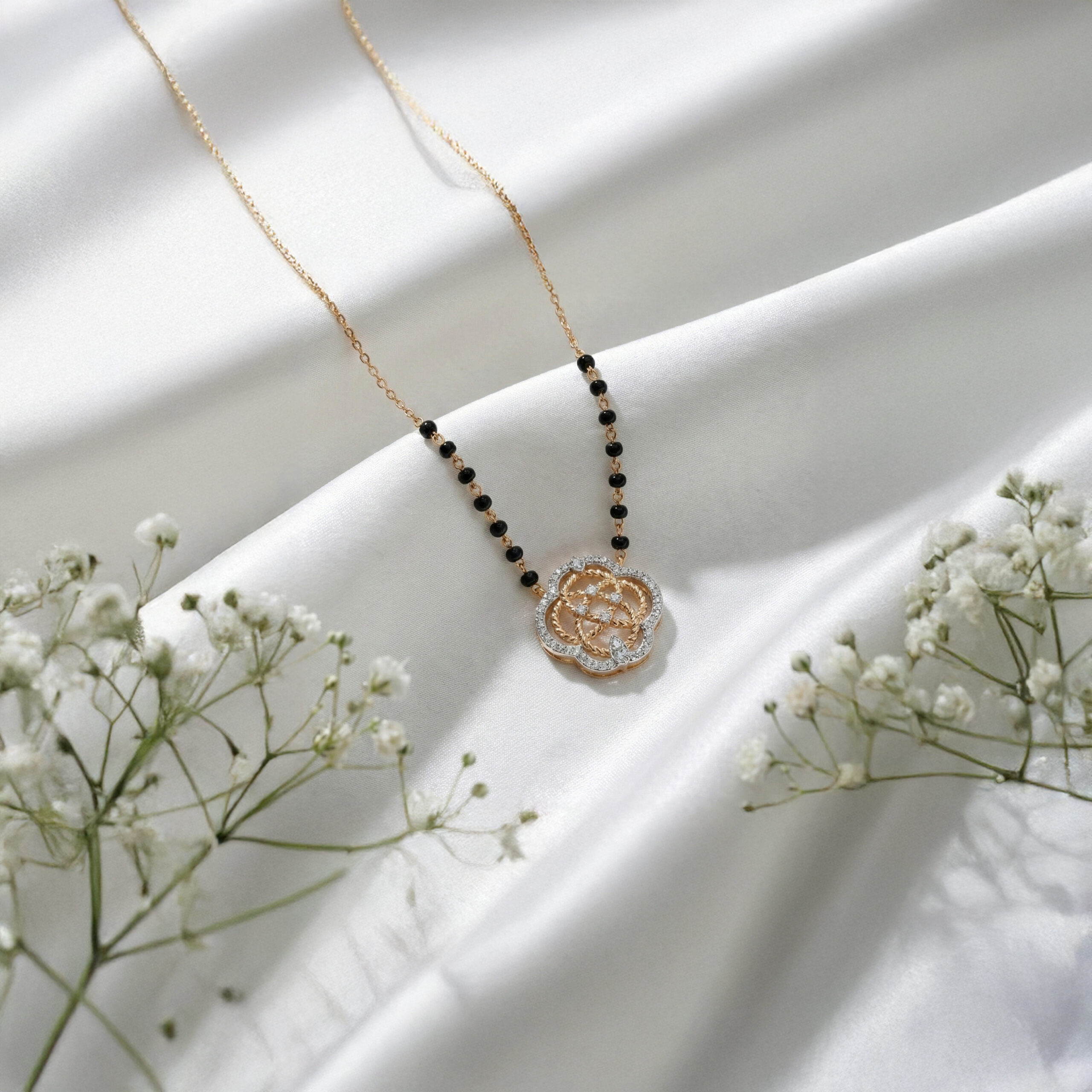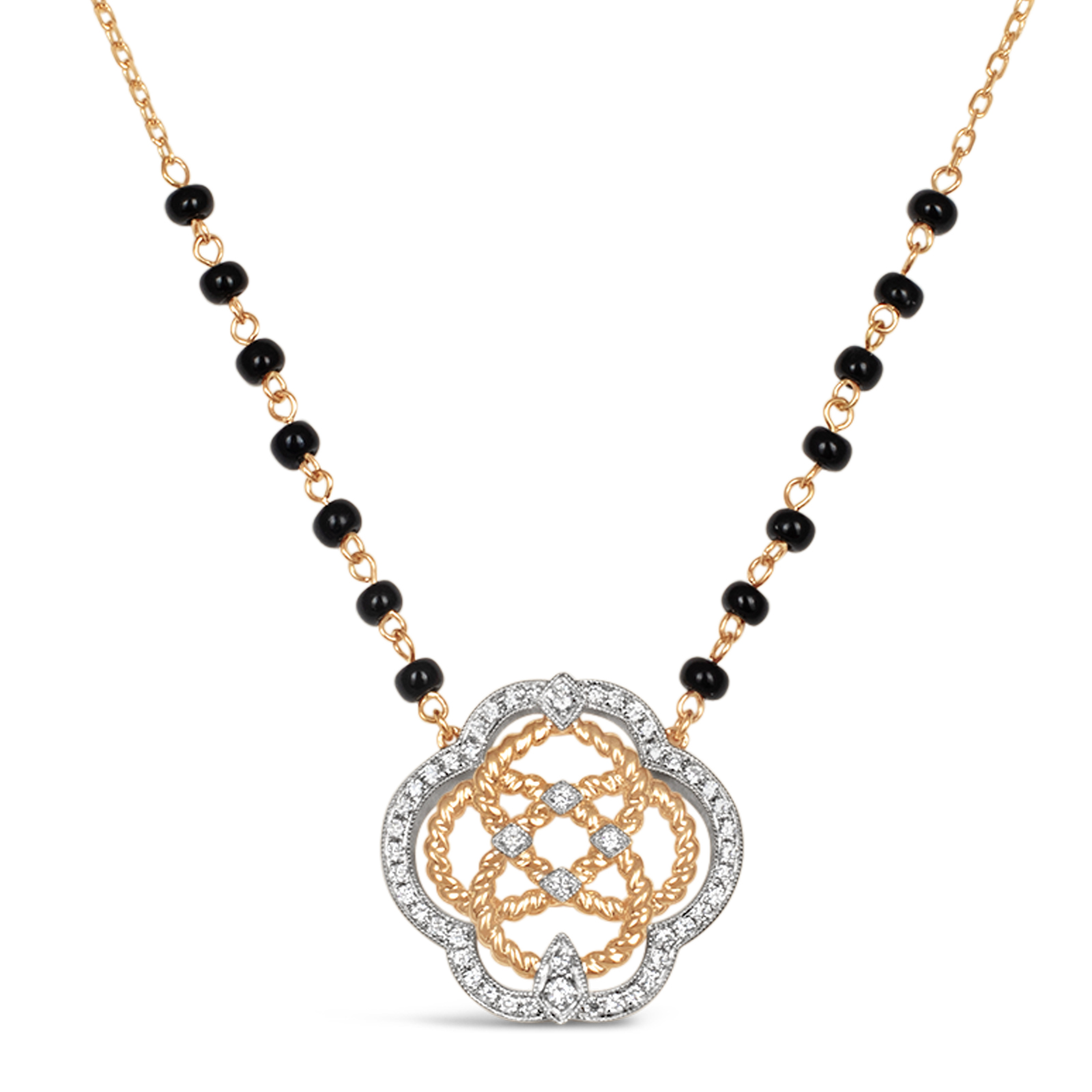 Nistha represents “loyalty” and “faith”. This bolder piece utilizes a striking gold rope texture intertwined with shimmering diamonds, symbolizing the intertwined lives and the steadfast commitment required to build a legacy.