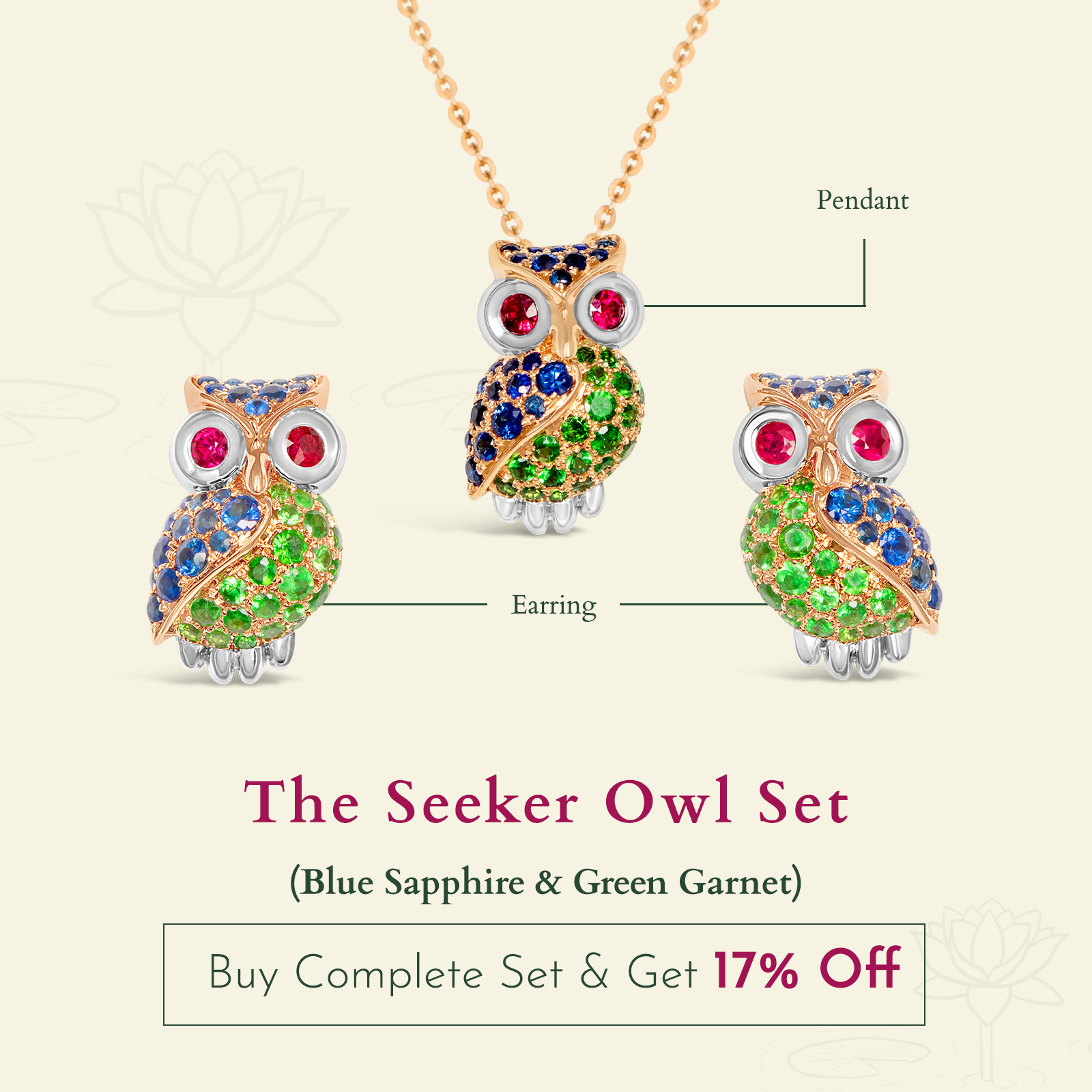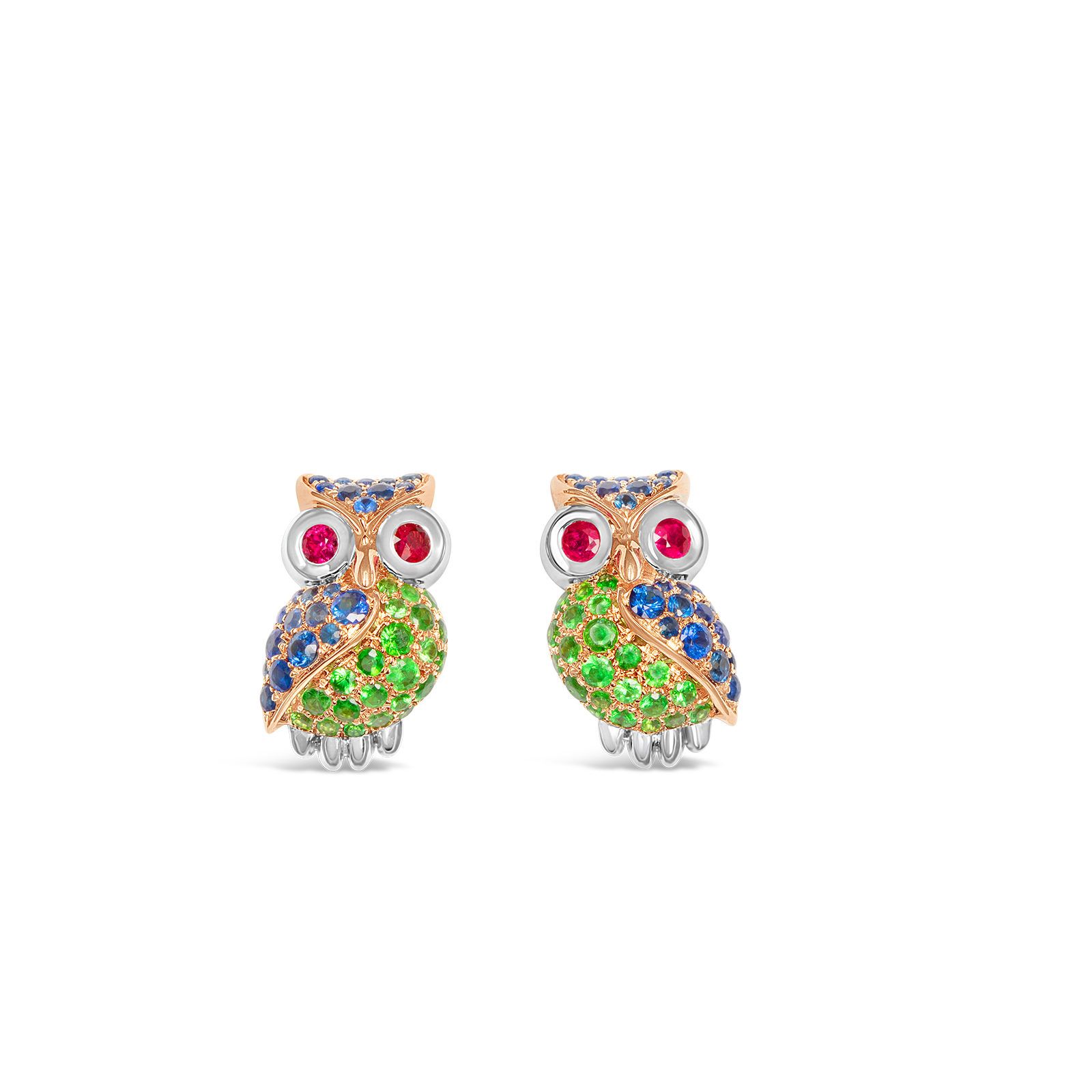 The Seeker Owl Earring (Blue Sapphire & Tsavorite)
