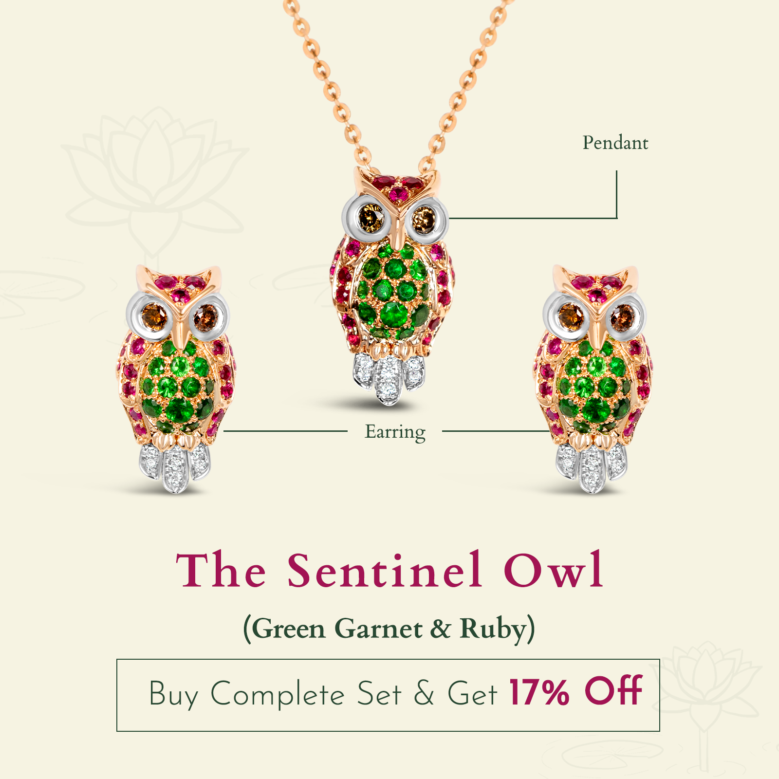 The Sentinel Owl Earring ( Tsavorite & Ruby)