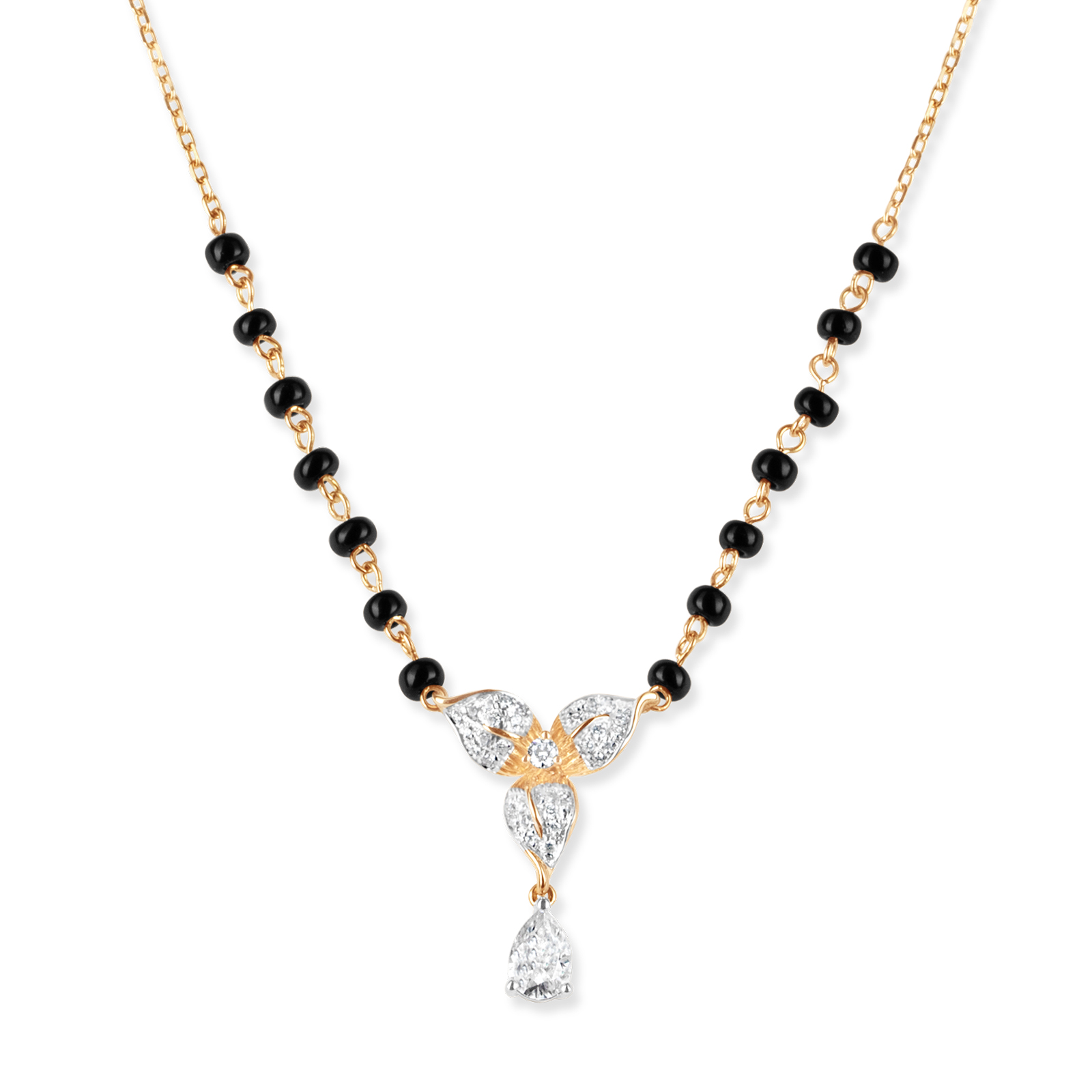 Our “Triguna” Mangalsutra, inspired by the Trillium’s delicate beauty, symbolizes love’s three key aspects – passion, commitment, and spiritual connection. Crafted in 14k gold, its pendant mirrors the Trillium’s petals with dazzling diamonds, embodying purity and brilliance. In Hindu philosophy, the Triguna – Sattva, Rajas, and Tamas – signify nature’s qualities. In love, they represent igniting passion, sustaining commitment, and deepening spiritual connection. This piece serves as a talisman of love’s harmony, emphasizing the balance needed for nurturing enduring relationships.
