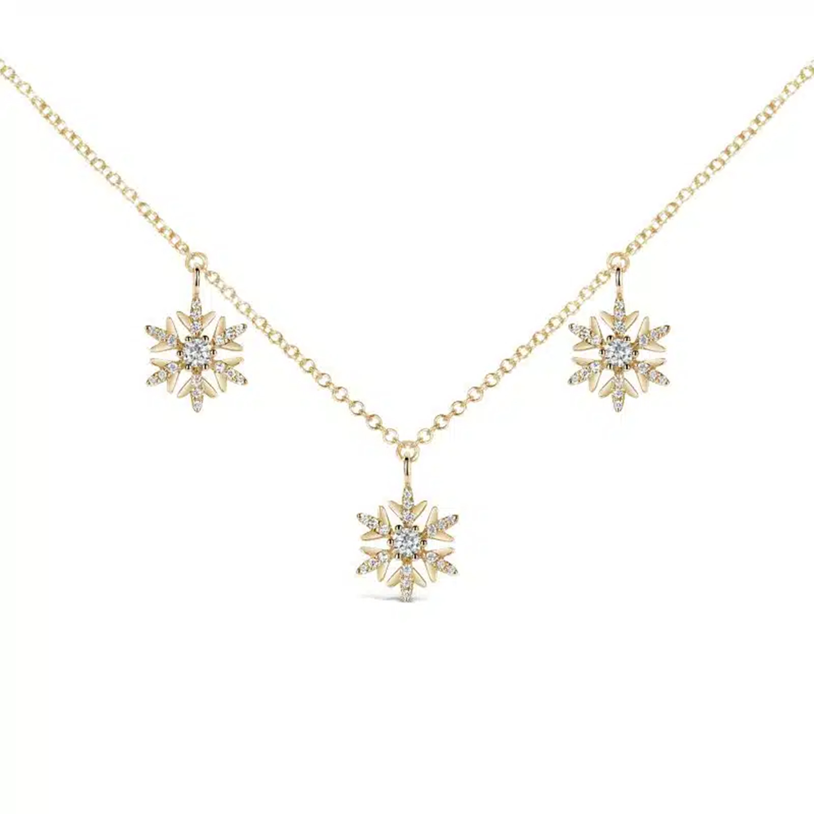 Triple Snowflake Diamond Necklace