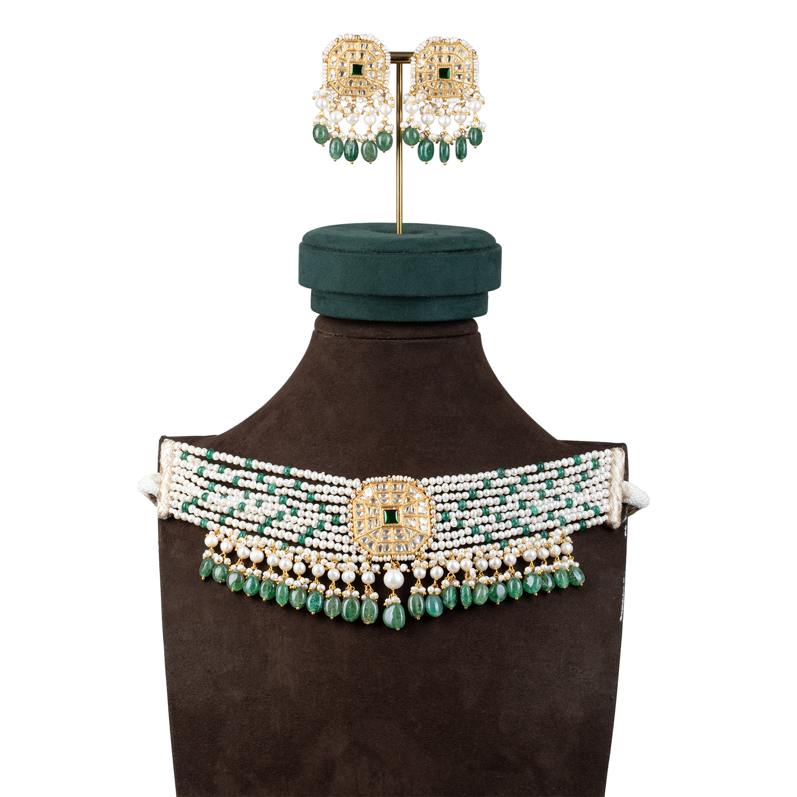 Zeenat Green Pearl Choker + Earring Polki Set B